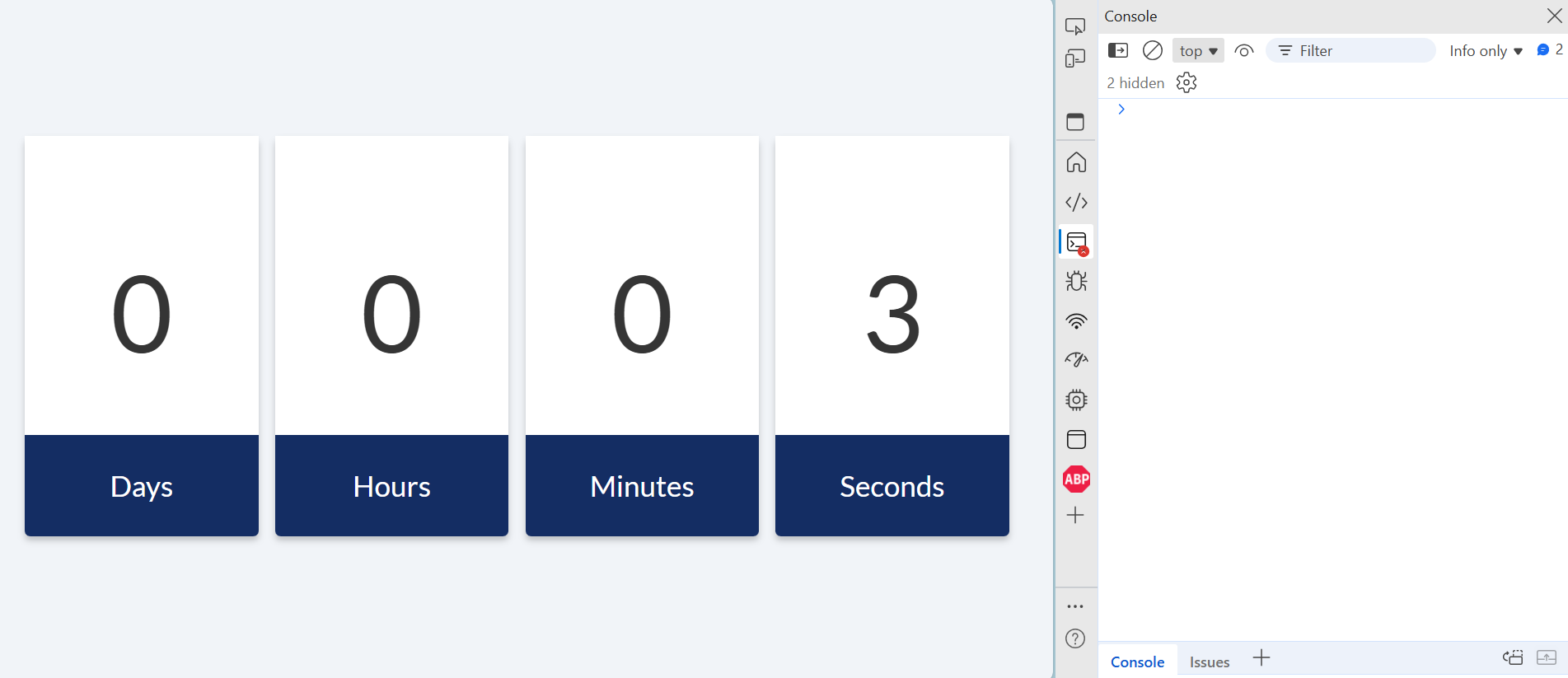 Koden inne i addEventListener -funksjonen vil utløses én gang når nedtellingen når null.